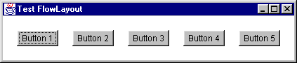 Die Klasse FlowLayout stellt den einfachsten Layoutmanager dar. Alle Elemente werden so lange nacheinander in einer Zeile angeordnet, bis kein Platz mehr vorhanden ist und in der nächsten Zeile fortgefahren wird.