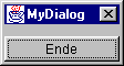 Damit nicht jedesmal ein komplettes Programm abgedruckt werden muß, wollen wir die Beispiele in ein vordefiniertes Rahmen-Programm einbetten. Dieses erzeugt ein Fenster mit zwei Buttons, die zum Aufrufen des Dialogs bzw. zum Beenden des Programms verwendet werden können: |