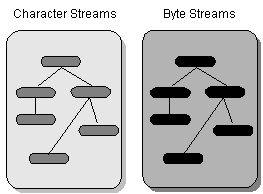 java.iopackage. The stream classes are divided into two class hierarchies, based on the data type (either characters or bytes) on which they operate.