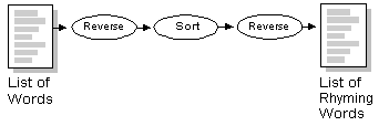 PipedReaderandPipedWriterto connect the input and output of itsreverseandsortmethods to create a list of rhyming words. Several classes make up this program.First, let's look at the calling sequence of the