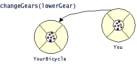 Sometimes, the receiving object needs more information so that it knows exactly what to do; for example, when you want to change gears on your bicycle, you have to indicate which gear you want. This information is passed along with the message as parameters. The next figure shows the three components that comprise a message: