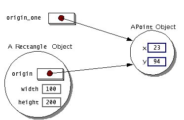 The first line creates an object from thePoint origin_one = new Point(23, 94); Rectangle rect_one = new Rectangle(origin_one, 100, 200); Rectangle rect_two = new Rectangle(50, 100);Pointclass and the second and third lines each create an object from the