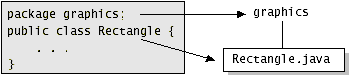 class name graphics.Rectanglepathname to file graphics/Rectangle.javaAs you may recall, by convention a company uses its reversed Internet domain name in its package names. The fictional company whose Internet domain name is