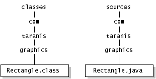 .javafile, a.classfile should also be in a series of directories that reflect the package name. However, it does not have to be in the same directory as its source. You could arrange your source and class directories separately, as shown below.By doing this, you can give the classes directory to other programmers without revealing your sources.