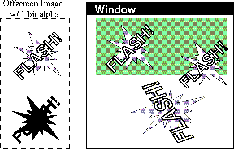 Figure 5-3 demonstrates how a program can draw to an offscreen image and then copy that image into a window multiple times. The last time the image is copied, it is transformed. Note that transforming the image instead of redrawing it with the transformation might produce unsatisfactory results.