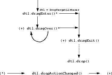 Note that the DropTarget itself implements DropTargetListener, this is to allow the platform peer, the DropTargetContextPeer instance, created by the platform, to notify the DropTarget of changes in state in the ongoing operation, and thus allows the DropTarget to interpose itself between the platform and the DropTargetListener registered with the DropTarget.