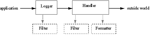 Applications make logging calls on Logger objects. These Logger objects allocate LogRecord objects which are passed to Handler objects for publication. Both Loggers and Handlers may use logging Levels and (optionally) Filters to decide if they are interested in a particular LogRecord. When it is necessary to publish a LogRecord externally, a Handler can (optionally) use a Formatter to localize and format the message before publishing it to an I/O stream.