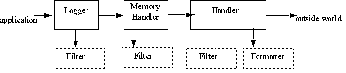 Some Handlers may direct output to other Handlers. For example, the MemoryHandler maintains an internal ring buffer of LogRecords and on trigger events it publishes its LogRecords through a target Handler. In such cases, any formatting is done by the last Handler in the chain.