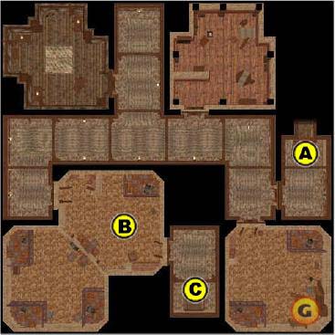 Before entering the Tavern, explore the house located in the northwest of the district. Here you'll find a key that opens the Seedy Tavern's side door. You'll also find two smugglers' coins and the orders from Callik, the latter of which may come in handy later. The second floor is guarded by a Bloodsailor lieutenant (2nd-level wizard/5th-level monk).