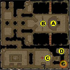 Proceed through the ruins until you reach the fallen hero (10th-level paladin) and his 6th-level mummy buddy. Once the fallen hero has fallen, take his heart to the altar near the stairs in the southeast corner. Place his heart on the altar to break the seal.