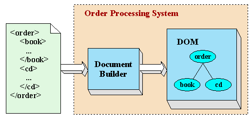 However, much of that flexibility is superfluous for the order processing application. In all likelihood, for example, such an application will not need to move elements around. The bottom line is that DOM, the Document Object Model, was intended for documents. It is a powerful tool for managing even very large documents, especially those in which large amounts of text are mixed in with the markup tags as you find, for example, in an HTML document.