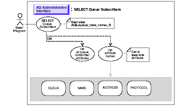 For queues created in 8.1-compatible queue tables, this view provides functionality that is equivalent to the dbms_aqadm.queue_subscribers() procedure. For these queues, it is recommended that the view be used instead of this procedure to view queue subscribers.