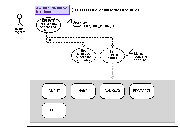 This view displays only the rule based subscribers for all queues in a given queue table including the text of the rule defined by each subscriber. This is a view of subscribers with rules defined on any queues of a given queue table. This view is generated when the queue table is created and is called aq$<queue_table_name>_r. It is used to query subscribers for any or all the queues in this queue table. Note that this view is only created for 8.1-compatible queue tables.