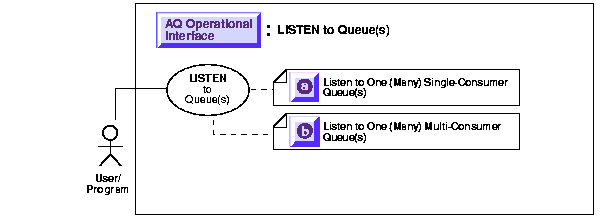 A successful return from the listen call is only an indication that there is a message for one of the listed agents in one the specified queues. The interested agent must still dequeue the relevant message.
