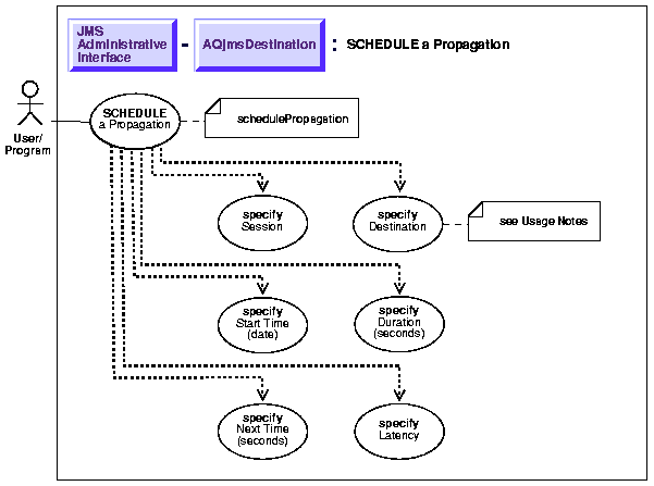 TopicSession t_sess; Topic topic; ((AQjmsDestination)topic).schedulePropagation(t_sess, null, null, null, null, new Double(0));