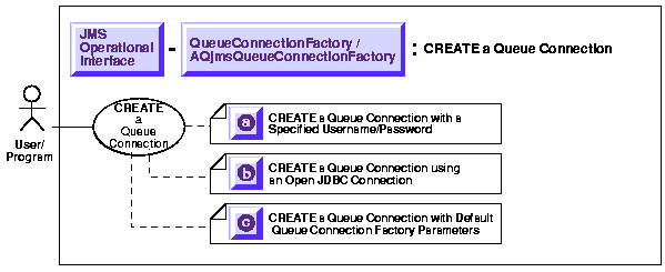 This section explains three ways to create a queue connection: