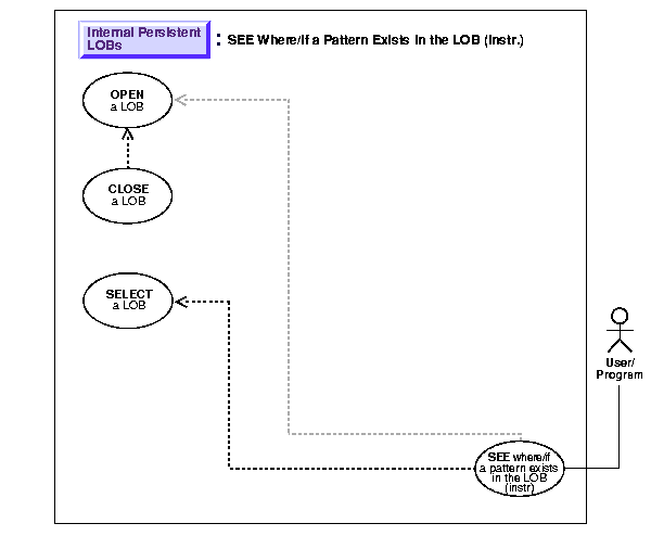 This procedure describes how to see if a pattern exists in the LOB (instr).