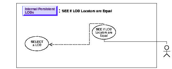 If two locators are equal, this means that they refer to the same version of the LOB data (see "Read-Consistent Locators"). In this example, the locators are equal. However, it may be as important to determine that locators do not refer to same version of the LOB data.