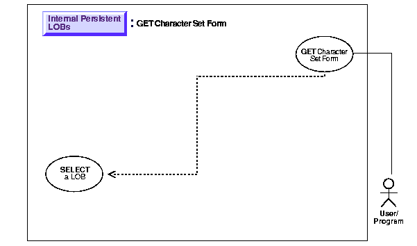 /* Select the locator */ sb4 select_FLSub_locator(Lob_loc, errhp, svchp, stmthp) OCILobLocator *Lob_loc; OCIError *errhp; OCISvcCtx *svchp; OCIStmt *stmthp; { OCIDefine *defnp1; text *sqlstmt = (text *)"SELECT FLSub FROM Multimedia_tab WHERE Clip_ID = 2"; checkerr (errhp, OCIStmtPrepare(stmthp, errhp, sqlstmt, (ub4)strlen((char *)sqlstmt), (ub4)OCI_NTV_SYNTAX, (ub4)OCI_DEFAULT)); /* Define the column being selected */ checkerr (errhp, OCIDefineByPos(stmthp, &defnp1, errhp, (ub4) 1, (dvoid *)&Lob_loc, (sb4)0, (ub2)SQLT_CLOB,(dvoid *)0, (ub2 *)0, (ub2 *)0, (ub4)OCI_DEFAULT)); /* Execute and fetch one row */ checkerr (errhp, OCIStmtExecute(svchp, stmthp, errhp, (ub4) 1, (ub4) 0, (CONST OCISnapshot*) 0, (OCISnapshot*) 0, (ub4) OCI_DEFAULT)); return 0; } /* This function takes a valid LOB locator and prints the character set form of the LOB. */ sb4 getcsformLob(envhp, errhp, svchp, stmthp) OCIEnv *envhp; OCIError *errhp; OCISvcCtx *svchp; OCIStmt *stmthp; { OCILobLocator *Lob_loc; ub1 charset_form = 0 ; (void) OCIDescriptorAlloc((dvoid *) envhp, (dvoid **) &Lob_loc, (ub4)OCI_DTYPE_LOB, (size_t) 0, (dvoid **) 0); printf (" select a FLSub locator\n"); select_FLSub_locator(Lob_loc, errhp, svchp, stmthp); printf (" get the character set form of FLSub\n"); /* Get the charactersid ID of the LOB*/ checkerr (errhp, OCILobCharSetForm(envhp, errhp, Lob_loc, &charset_form)); printf(" character Set Form of FLSub is : %d\n", charset_form); /* Free resources held by the locators*/ (void) OCIDescriptorFree((dvoid *) Lob_loc, (ub4) OCI_DTYPE_LOB); return; }