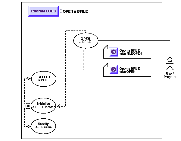 "Use Case Model: External LOBs (BFILEs)" for all basic operations of External LOBs (BFILES). |