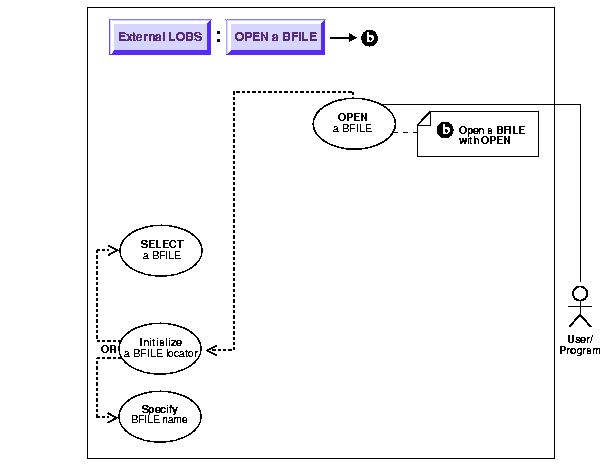 "Use Case Model: External LOBs (BFILEs)" for all basic operations of External LOBs (BFILES). |