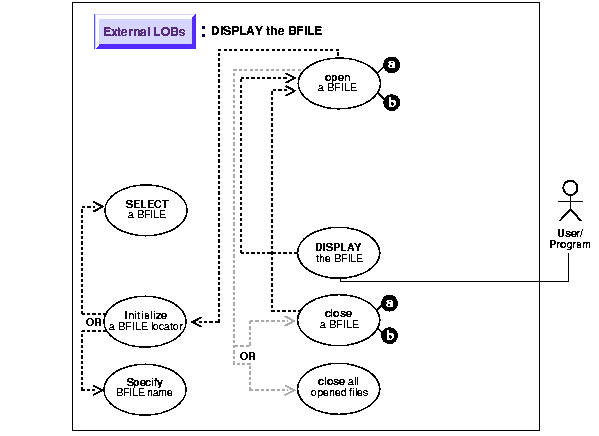 "Use Case Model: External LOBs (BFILEs)" for all basic operations of External LOBs (BFILES). |