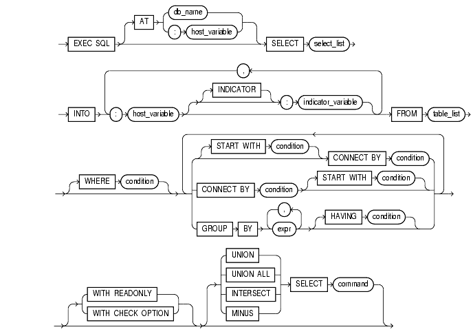 In all Pro*COBOL EXEC SQL diagrams, each statement is understood to end with the token END-EXEC.
