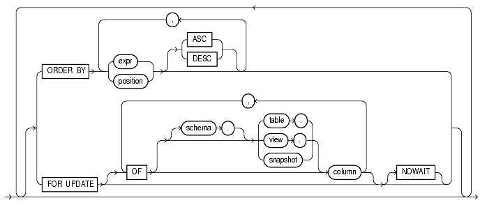 If you have the choice of more than one keyword, operator, or parameter, your options appear in a vertical list. In the following example, you can travel down the vertical line as far as you like, then continue along any horizontal line: