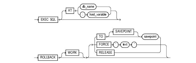 EXEC SQL ROLLBACK END-EXEC. EXEC SQL ROLLBACK WORK END-EXEC. EXEC SQL AT ORACLE2 ROLLBACK END-EXEC.