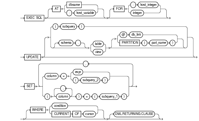 Limits the number of times the UPDATE statement is executed if the SET and WHERE clauses contain array host variables. If you omit this clause, Oracle8i executes the statement once for each component of the smallest array. |