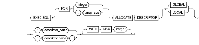 EXEC SQL FOR :batch ALLOCATE DESCRIPTOR GLOBAL :binddes WITH MAX 25 END-EXEC.