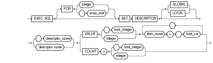 EXEC SQL SET DESCRIPTOR GLOBAL :mydescr COUNT = 3 END-EXEC.