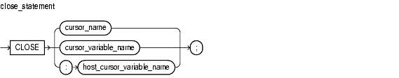 The CLOSE statement allows resources held by an open cursor or cursor variable to be reused. No more rows can be fetched from a closed cursor or cursor variable. For more information, see "Managing Cursors".