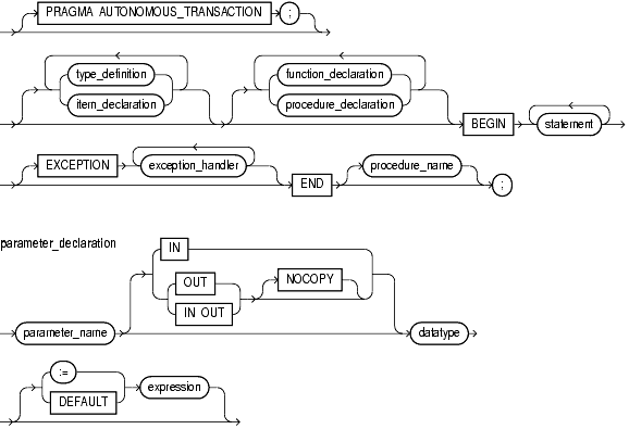 The AUTONOMOUS_TRANSACTION pragma instructs the PL/SQL compiler to mark a routine as autonomous (independent). An autonomous transaction is an independent transaction started by another transaction, the main transaction. Autonomous transactions let you suspend the main transaction, do SQL operations, commit or roll back those operations, then resume the main transaction. For more information, see "Using Autonomous Transactions".