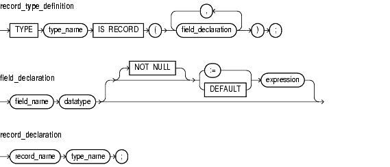 This declares a user-defined record. For the syntax of record_declaration, see "Records".