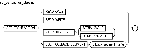 The SET TRANSACTION statement begins a read-only or read-write transaction, establishes an isolation level, or assigns the current transaction to a specified rollback segment. Read-only transactions are useful for running multiple queries against one or more tables while other users update the same tables. For more information, see "Using SET TRANSACTION".