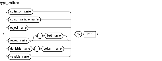 The %TYPE attribute provides the datatype of a field, record, nested table, database column, or variable. You can use the %TYPE attribute as a datatype specifier when declaring constants, variables, fields, and parameters. For more information, see "Using %TYPE".