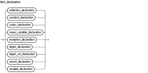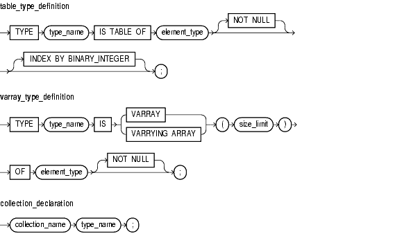 This declares a collection (index-by table, nested table, or varray). For the syntax of collection_declaration, see "Collections".