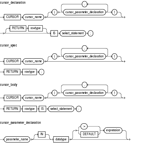 This declares an explicit cursor. For the syntax of cursor_declaration, see "Cursors".