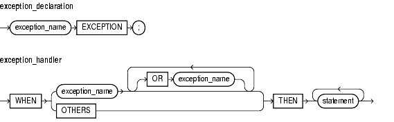 This associates an exception with a sequence of statements, which is executed when that exception is raised. For the syntax of exception_handler, see "Exceptions".