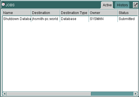 For more information on the Job Scheduling System, see Chapter 3, "Job and Event Systems". For detailed information on the Jobs pane, see the Oracle Enterprise Manager Administrator's Guide.