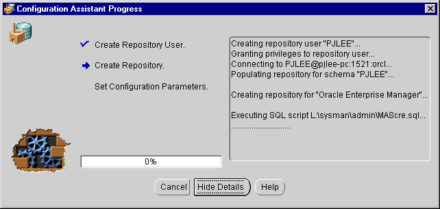 If the OEM_REPOSITORY tablespace does not exist, the following screen appears: