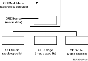 The ORDMultiMedia class is an abstract superclass. You will never create a ORDMultiMedia object. Instead, the ORDMultiMedia class contains methods and attributes common to ORDAudio, ORDImage, and ORDVideo.