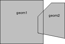In Figure 7-3, the shaded area represents the polygon returned when SDO_UNION is used with a square (geom1) and another polygon (geom2).