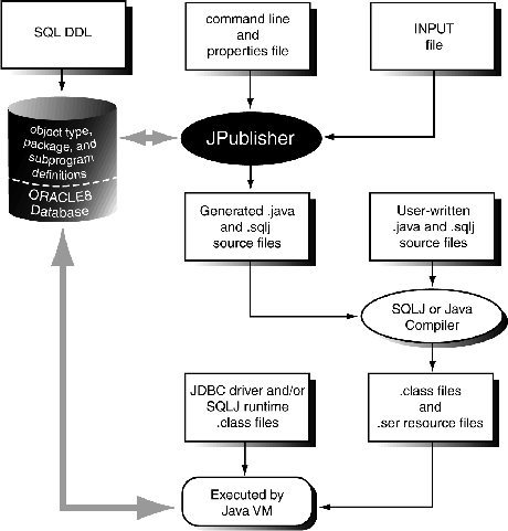 JPublisher is a utility, written entirely in Java, that generates Java classes to represent the following user-defined database entities in your Java program: