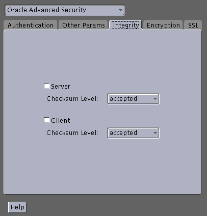 SQLNET.CRYPTO_CHECKSUM_SERVER = [accepted | rejected | requested | required] SQLNET.CRYPTO_CHECKSUM_TYPES_SERVER = (crypto_checksum_algorithm)