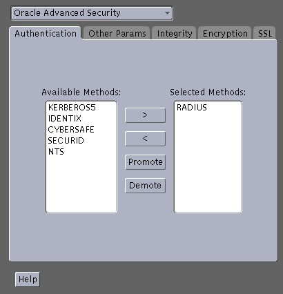 SQLNET.AUTHENTICATION_SERVICES=service SQLNET.RADIUS_AUTHENTICATION=location