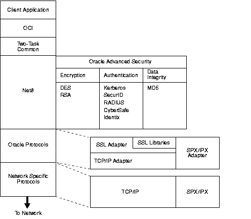 By supporting SSL, Oracle Advanced Security expands its support for encryption and integrity and provides public key authentication based on the SSL standard.
