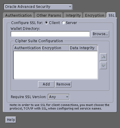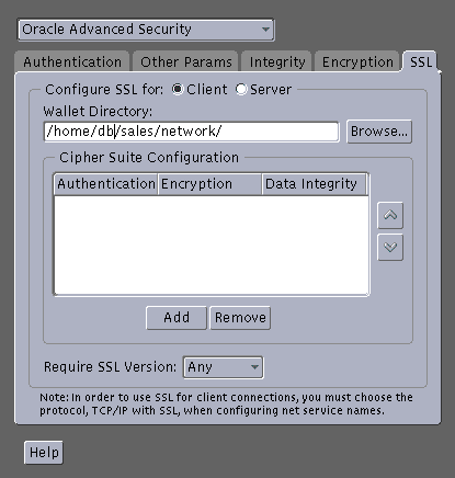 You can set the SSL_VERSION parameter in the sqlnet.ora file. The parameter defines the version of SSL that must run on the machines with which the client communicates. You can require those machines to use SSL 3.0, or any existing or future versions. The default setting for this parameter in sqlnet.ora is 0; in Net8 Assistant it is Any.