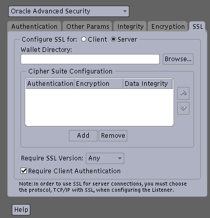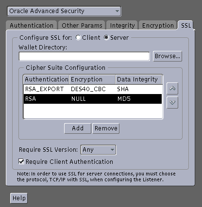 You must set this parameter to FALSE if you are using a cipher suite that contains Diffie-Hellman anonymous authentication (DH_anon). Also, you can set this parameter to FALSE for the client to authenticate itself to the server by using any of the non-SSL authentication methods supported by Oracle Advanced Security, such as Kerberos or CyberSafe.